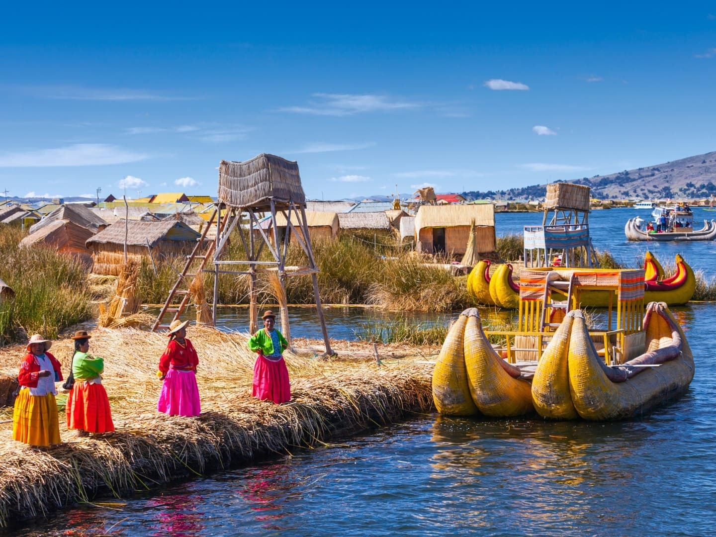 Por la mañana, embarcaremos en una lancha para visitar un pueblo que huyendo de las diferentes culturas que llegaron a dominarlos se refugiaron dentro del lago Titicaca, los Uros. Esta comunidad sigue construyendo sus islas siguiendo las técnicas ancestrales, y nos reciben para transmitirnos sus conocimientos. Un pueblo que vive de sus visitantes. Continuaremos navegando hacia la Isla de Taquile. La comunidad de la isla ha mantenido vivas sus tradiciones, vestimentas y forma de vida. Es una de las pocas comunidades quechua en una región esencialmente aymara, y se han mantenido cerrados a que la modernidad cambie sus vidas. Nos recibirán con su música y danzas. Almuerzo en restaurante comunal, una comida simple pero rica en nutrientes. A continuación, realizaremos una caminata por los alrededores para apreciar los bellos paisajes del lago Titicaca. Regreso al puerto de Puno. Traslado al hotel.
